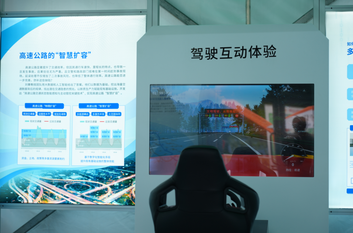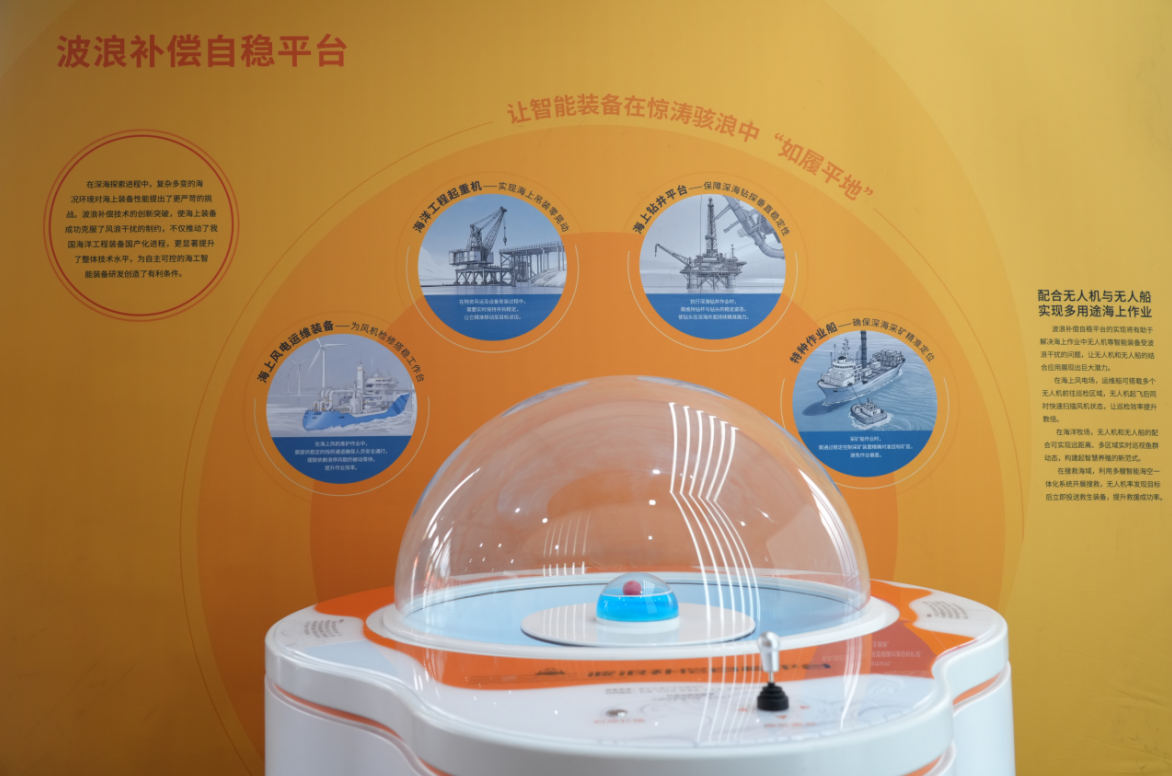 以沉浸体验的高新展示技术“包装”前沿科技成果是展览另一亮点。展览融入了机电互动、全息投影、AI交互、VR体验等多种展示技术:公众可以在“波浪补偿自稳平台”,操控摇杆模拟波浪、体验海上波浪中的小球如何保持水平稳定,见证海上智能装备的硬核实力;在“表情机器人”前感受机器人AI像“镜子”般模仿并再现自己的表情;通过舰载机起降巡航VR,化身飞行员体验航母舰载机全飞行流程;戴上VR 设备穿梭于“生命灵境”,目睹DNA转录成蛋白质的过程......同时,展览特别挖掘科学家成长和科研背后的故事,如天津大学陈焱教授小时候从姥爷的象棋盘中萌生对折纸的兴趣,东南大学刘攀教授在学生时代对于交通数据采集的默默坚守,让科普不止有科技含量,更有情感温度。